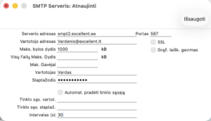 Svarbu! SMTP serverio nustatymas taikomas visoms tame pačiame serveryje esančioms įmonėms. Todėl, jei viename serveryje yra kelios įmonės, turinčios skirtingų domenų el. pašto adresus, rekomenduojame naudoti „Excellent“ SMTP serverį – taip kiekviena įmonė galės siųsti laiškus iš savo nurodyto el. pašto adreso.